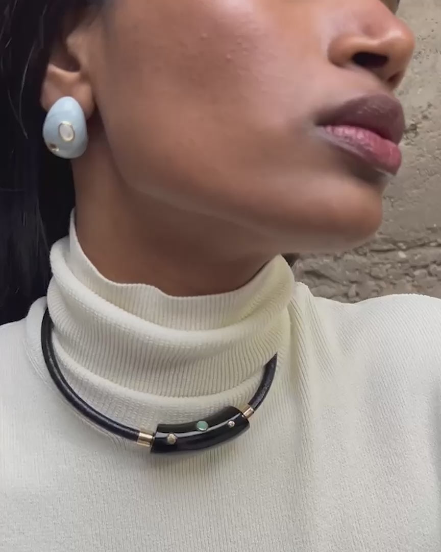 Let it rain in the prettiest hue of light blue enamel. These adorably chic mini teardrop earrings are dotted with mother-of-pearl and semiprecious lemon quartz stones.