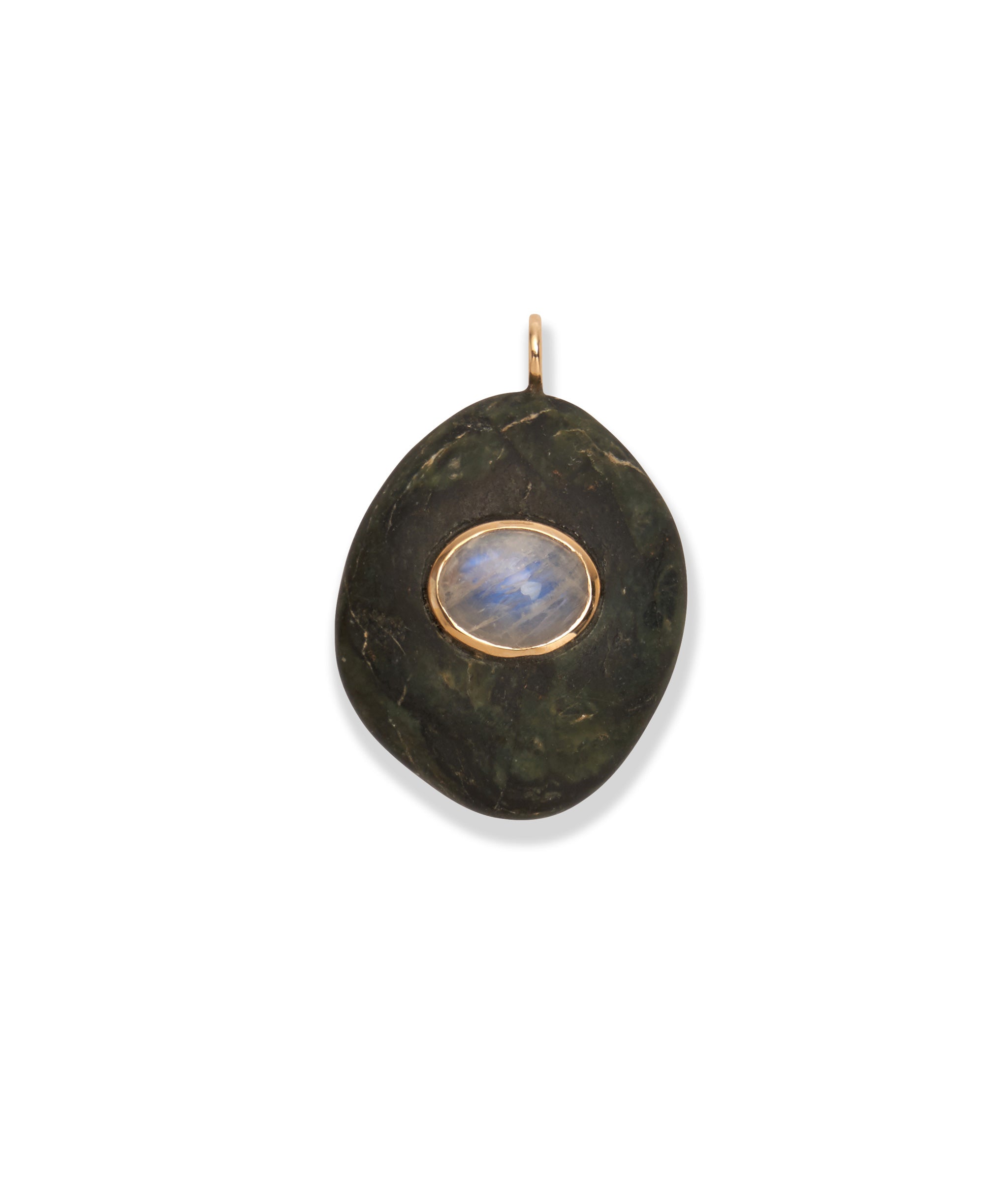 Singular Oval 14k Gold Necklace Charm in Green Amethyst