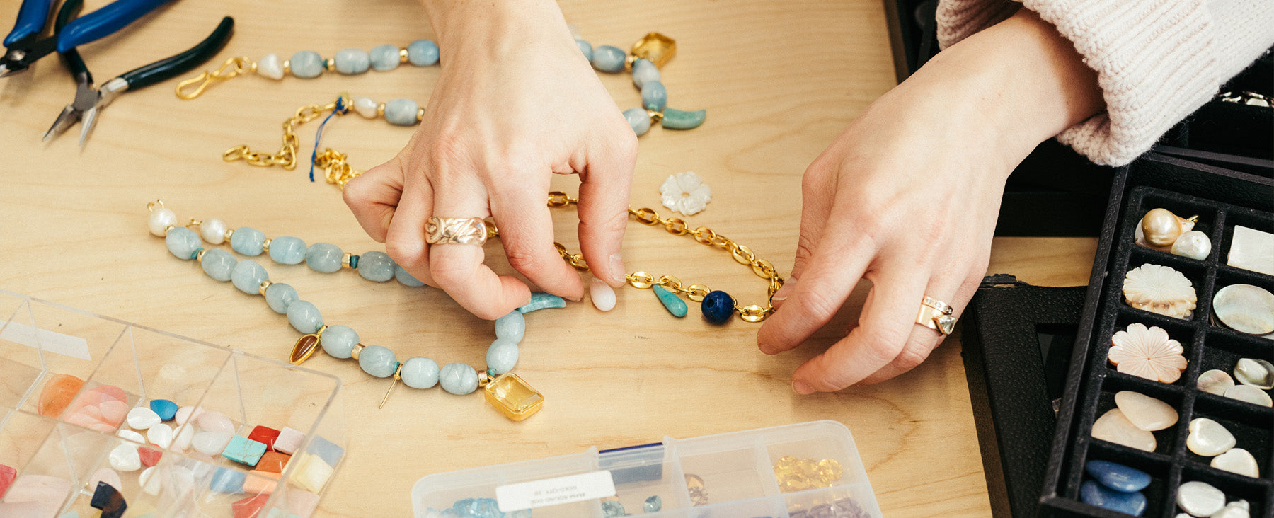 We also rely on a small but mighty team of expert jewelry-makers to carefully assemble our pieces, many of whom are women, and moms, who are able to work for us from home in order to look after kids and family. We take immense pride in our uniquely local, piecemeal, and intentional production approach.