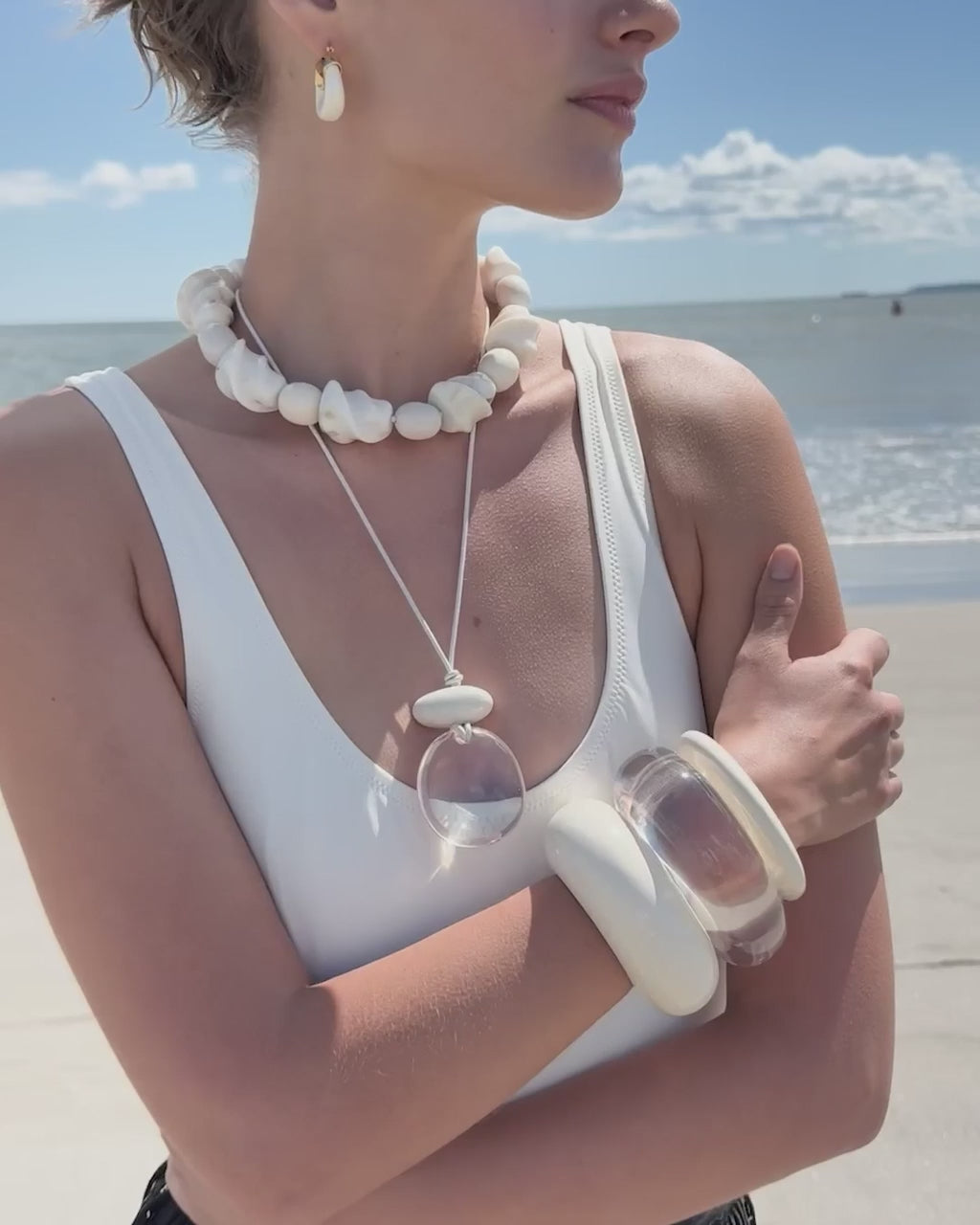 Make it mini! Our iconic, best-selling hoop earrings just got even more wearable, with a slightly smaller drop to suit any style situation. In gold-plated brass and opaque, alabaster-colored resin.