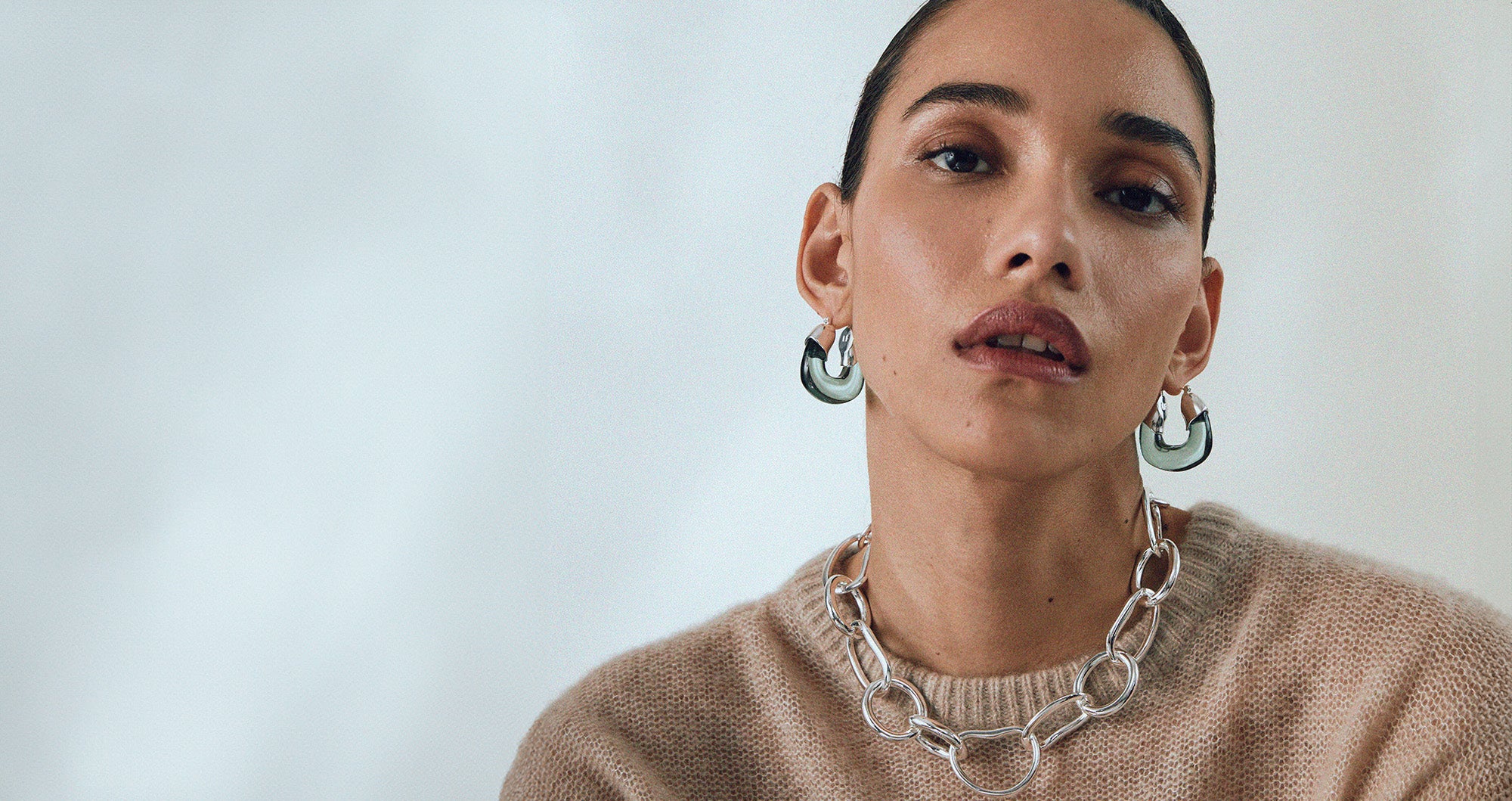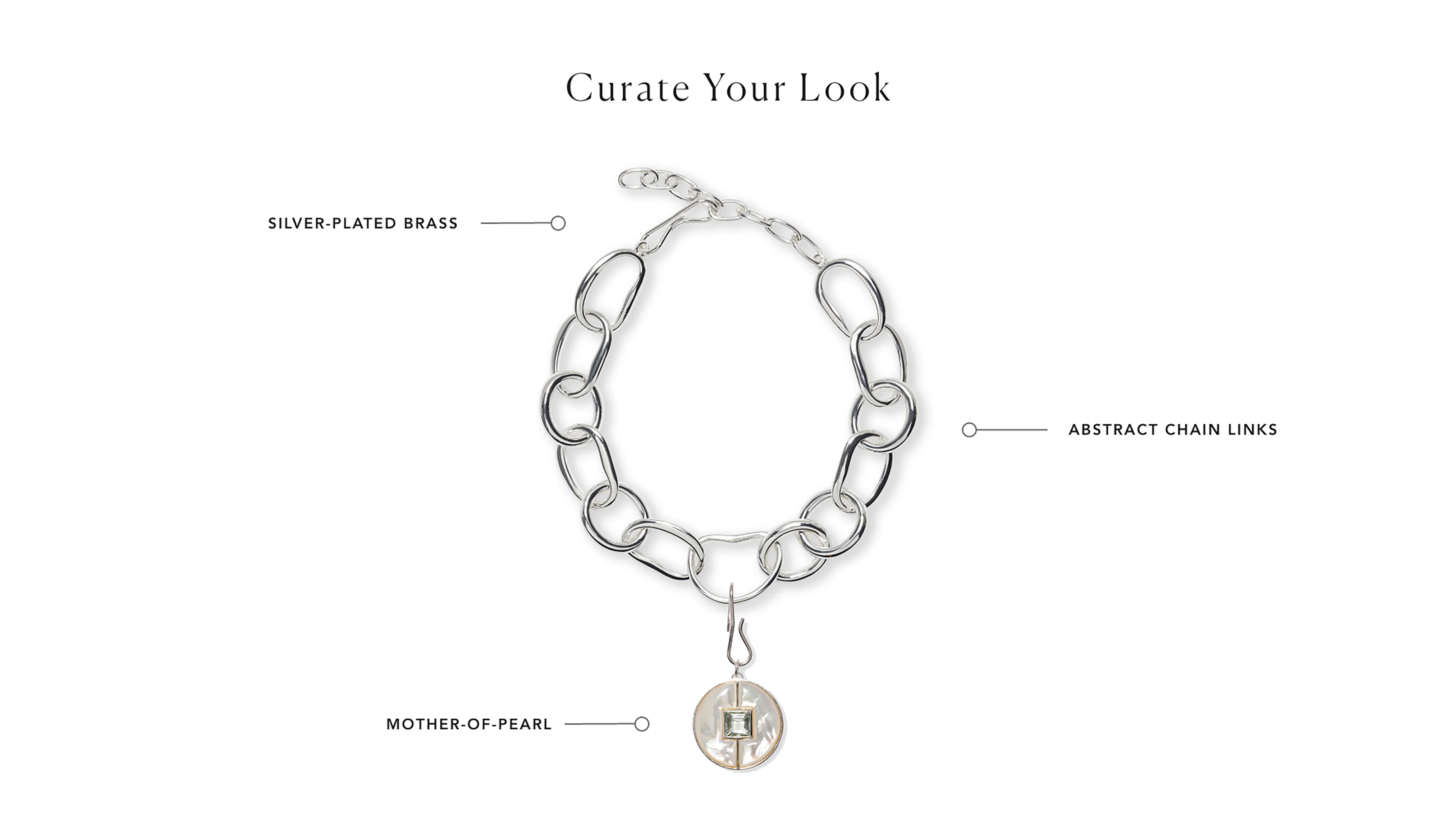 The Porto Chain features oversized abstract links in silver-plated brass and is an incredibly cool necklace on its own (but even better with charms and pendants attached!).